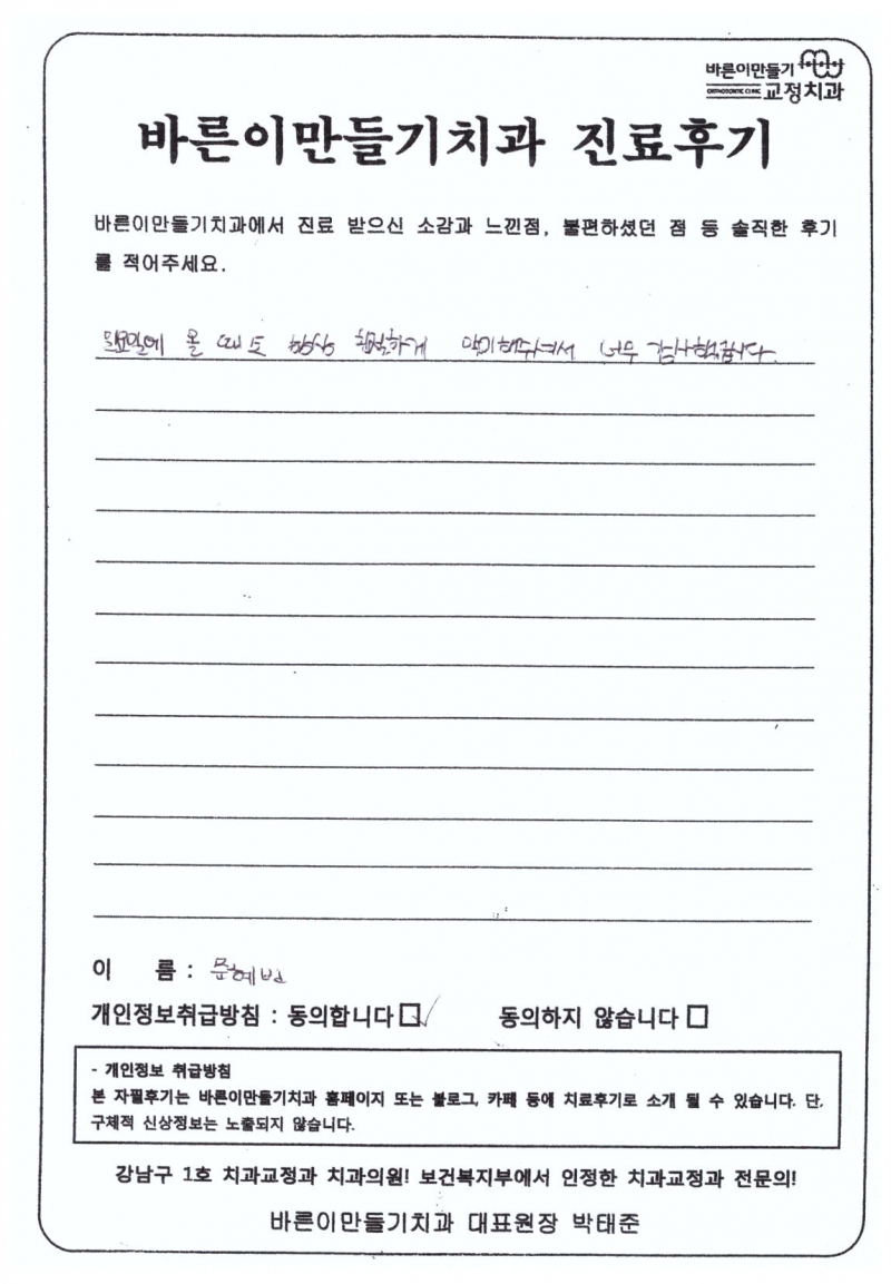 문혜빈님 치아교정후기
