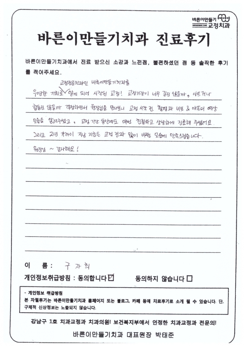 구자희님 치아교정후기
