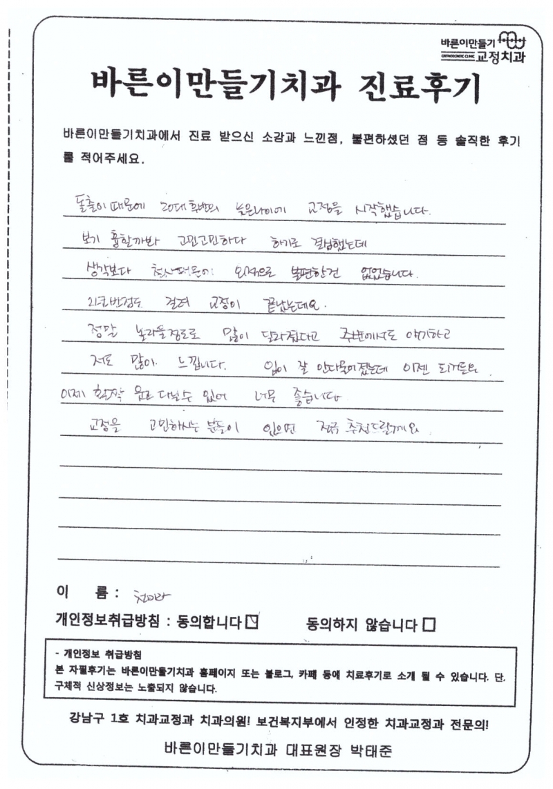 교정치료내용 : 위아래 전체교정 (클리피씨 교정)
