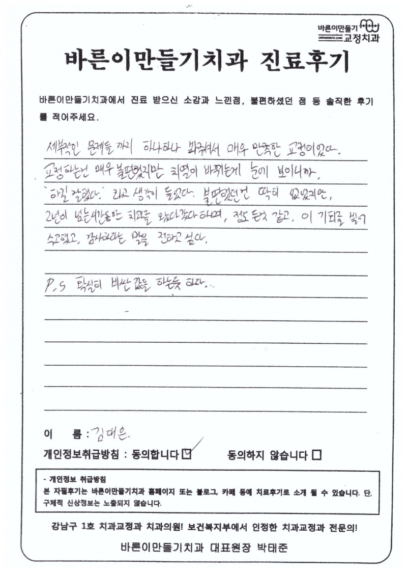 김대은님 치아교정후기