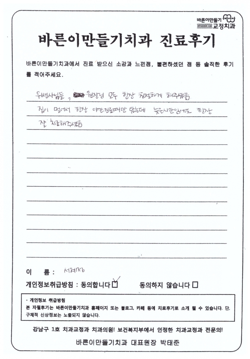 서혜정님 치아교정후기