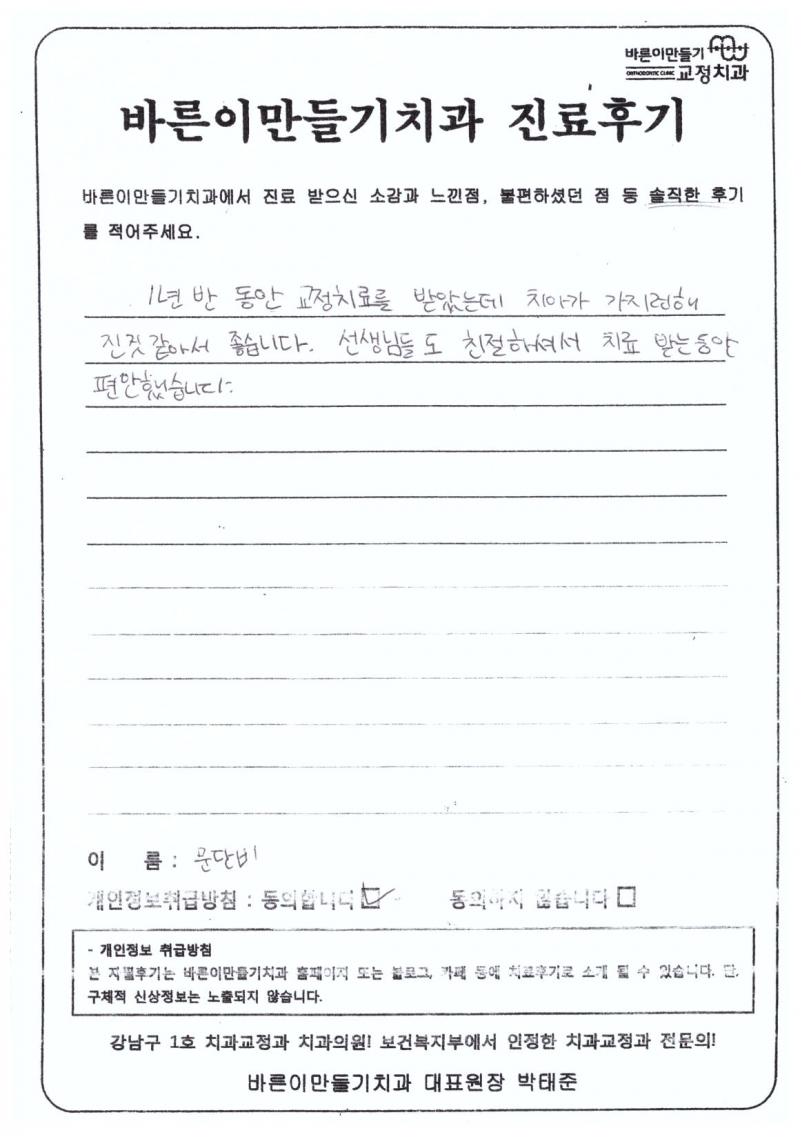 교정치료내용 : 위아래 전체교정 (클리피씨 교정)