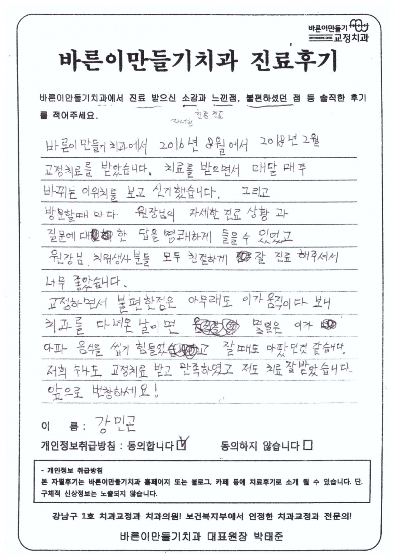 강민곤님 치아교정후기