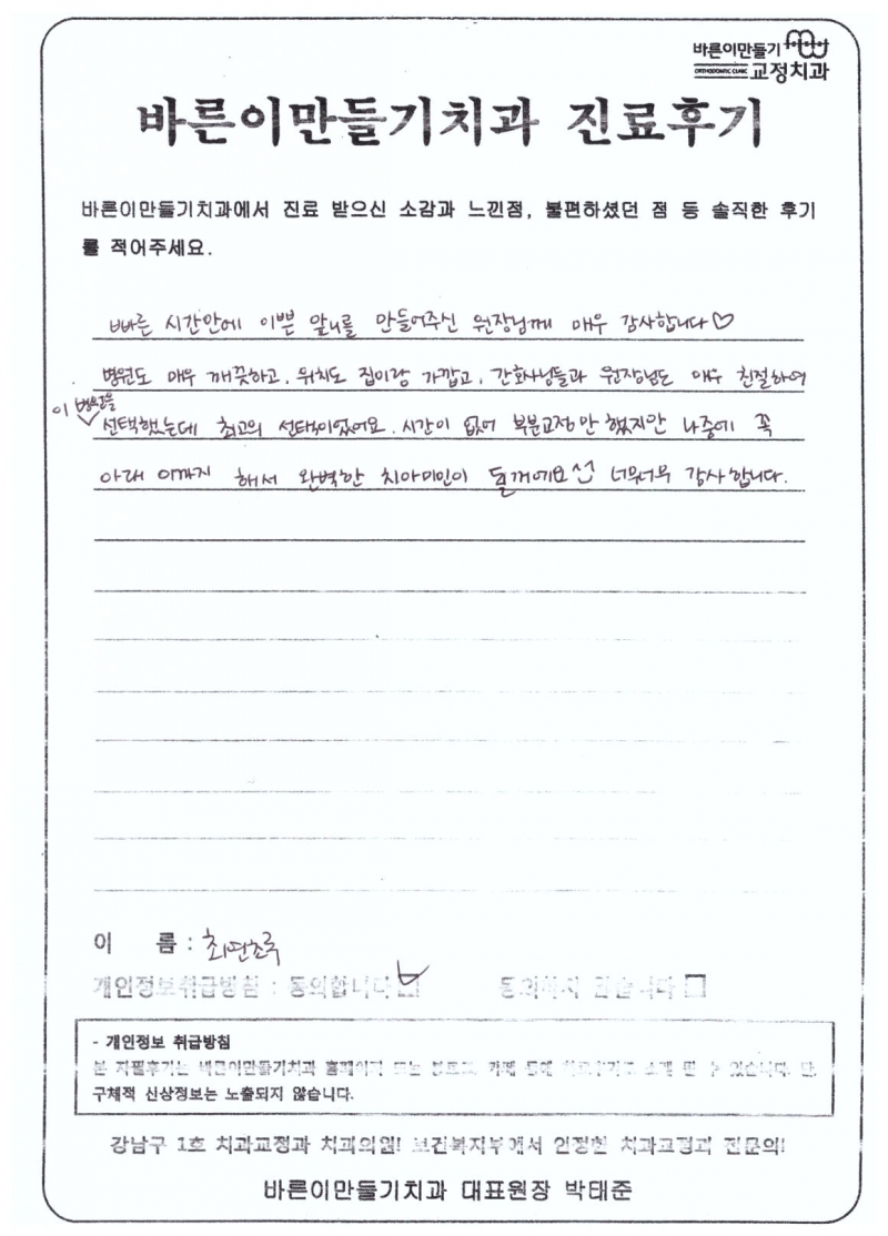 교정치료내용 : 위 부분교정 (세라믹 교정)