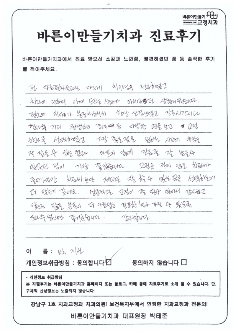 박지선님 치아교정후기