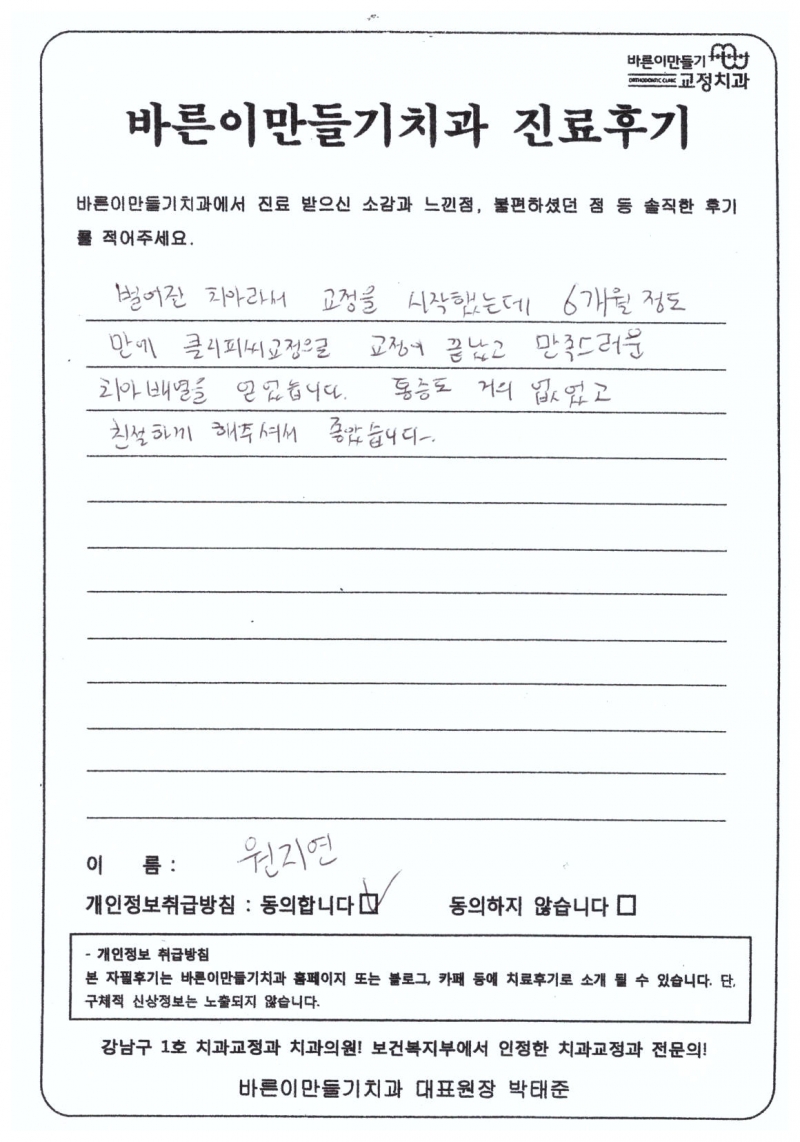 원지연님 치아교정후기