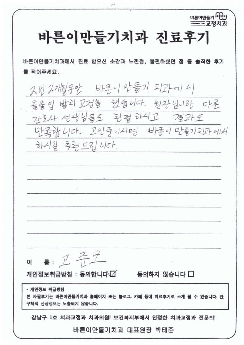 교정치료내용 : 위 아래 전체교정(클리피씨 교정)