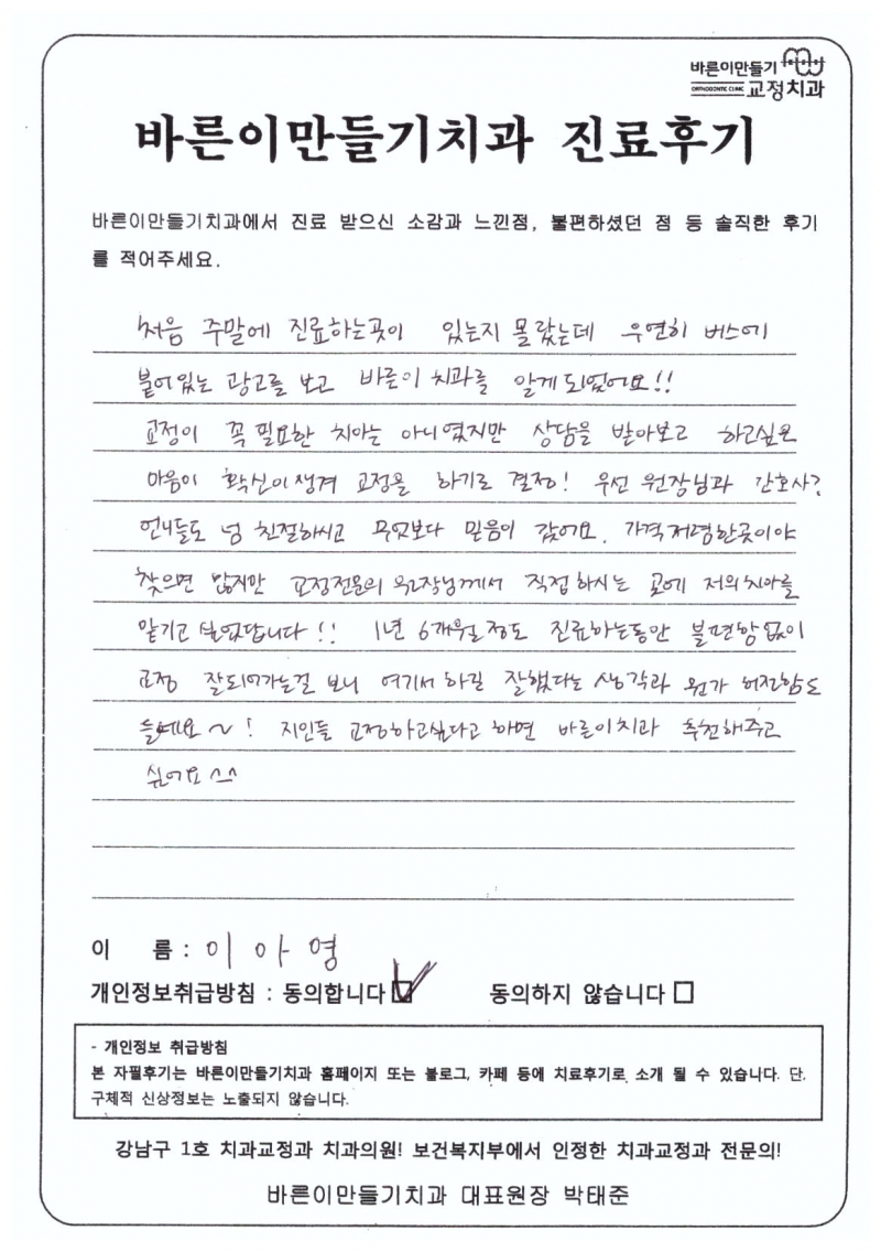 이아영님 치아교정후기