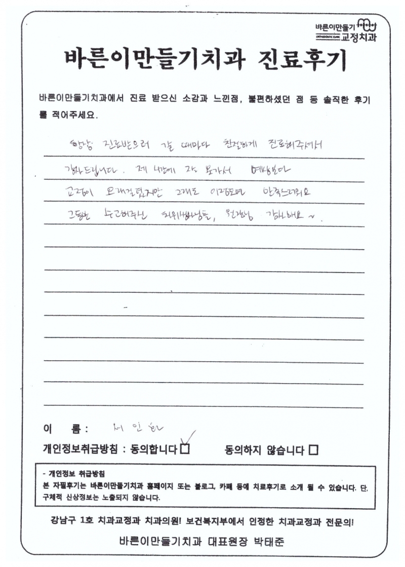 서인화님 치아교정후기
