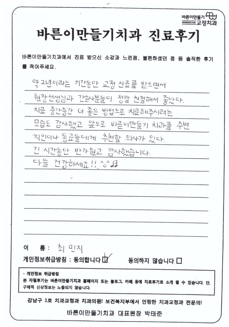 최민지님 치아교정후기
