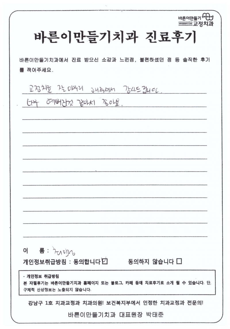 최민정님 치아교정후기