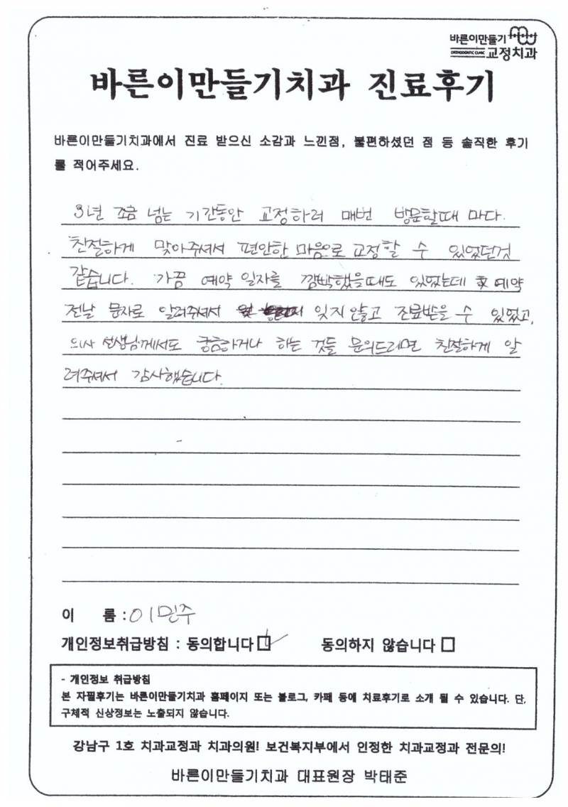 이민주님 치아교정후기