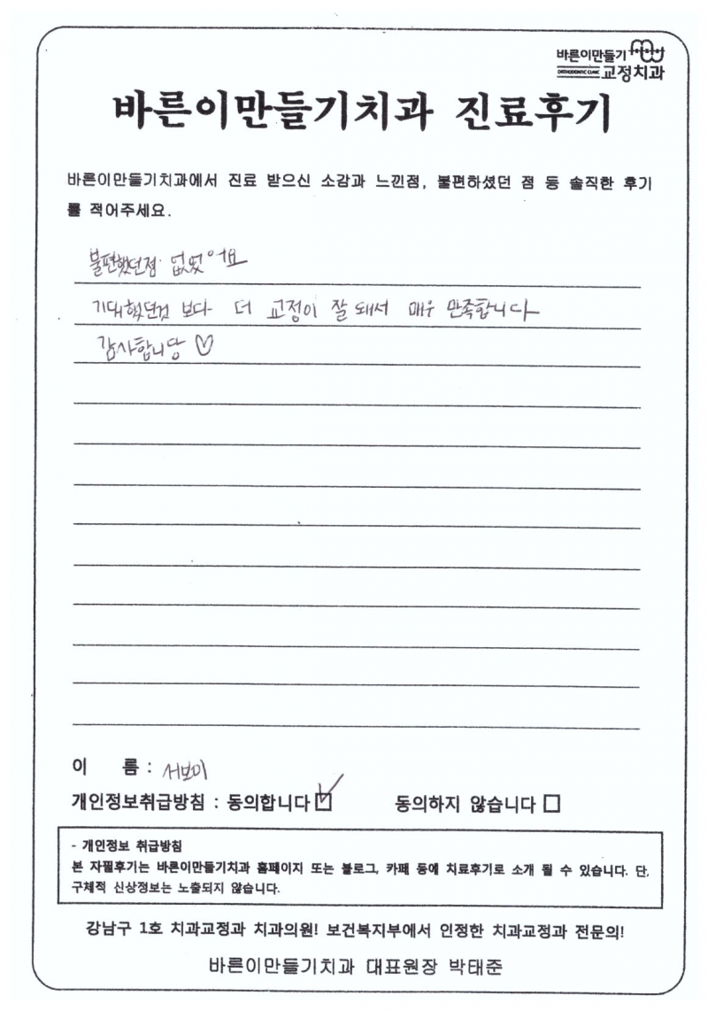 서보미님 치아교정후기