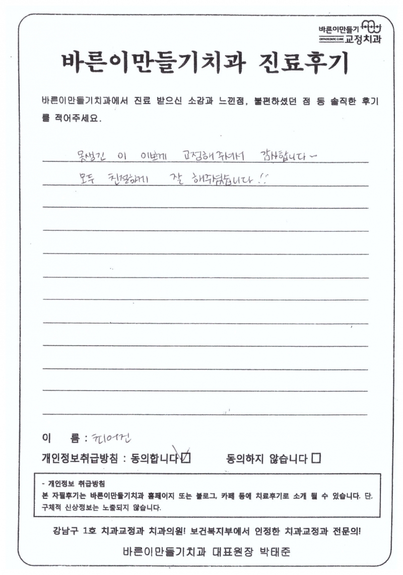 최어진님 치아교정후기