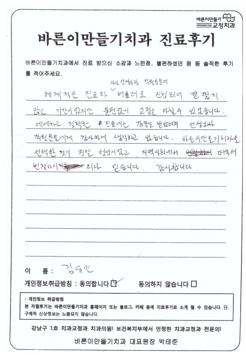 김유민님 치아교정후기