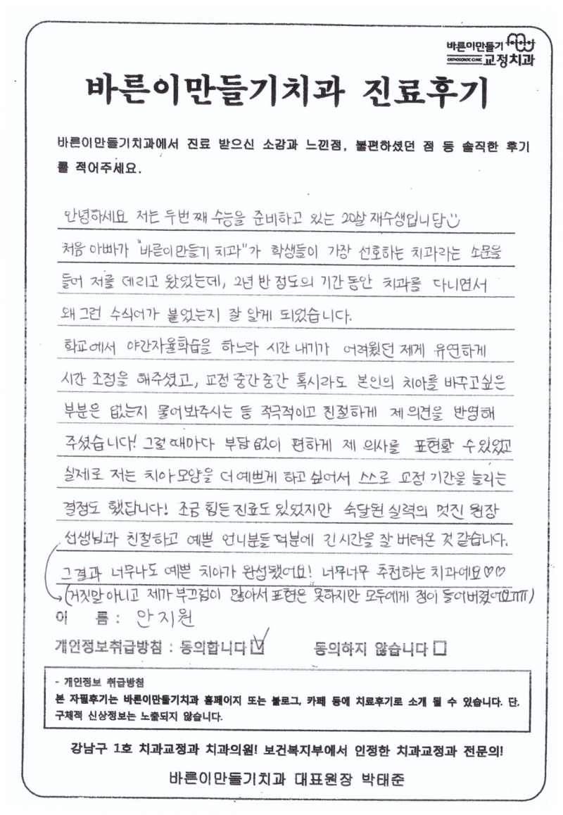 안지원님 치아교정후기