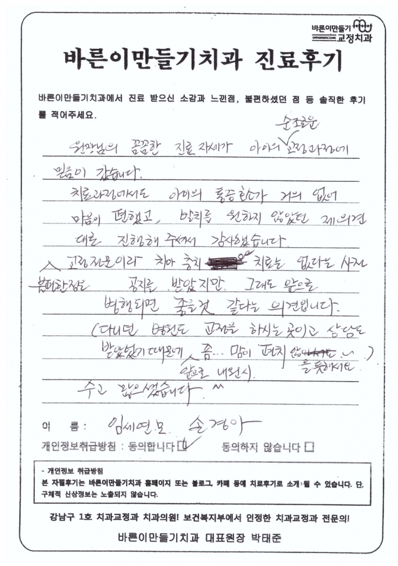 교정치료내용 : 위아래 전체교정 (클리피씨교정)