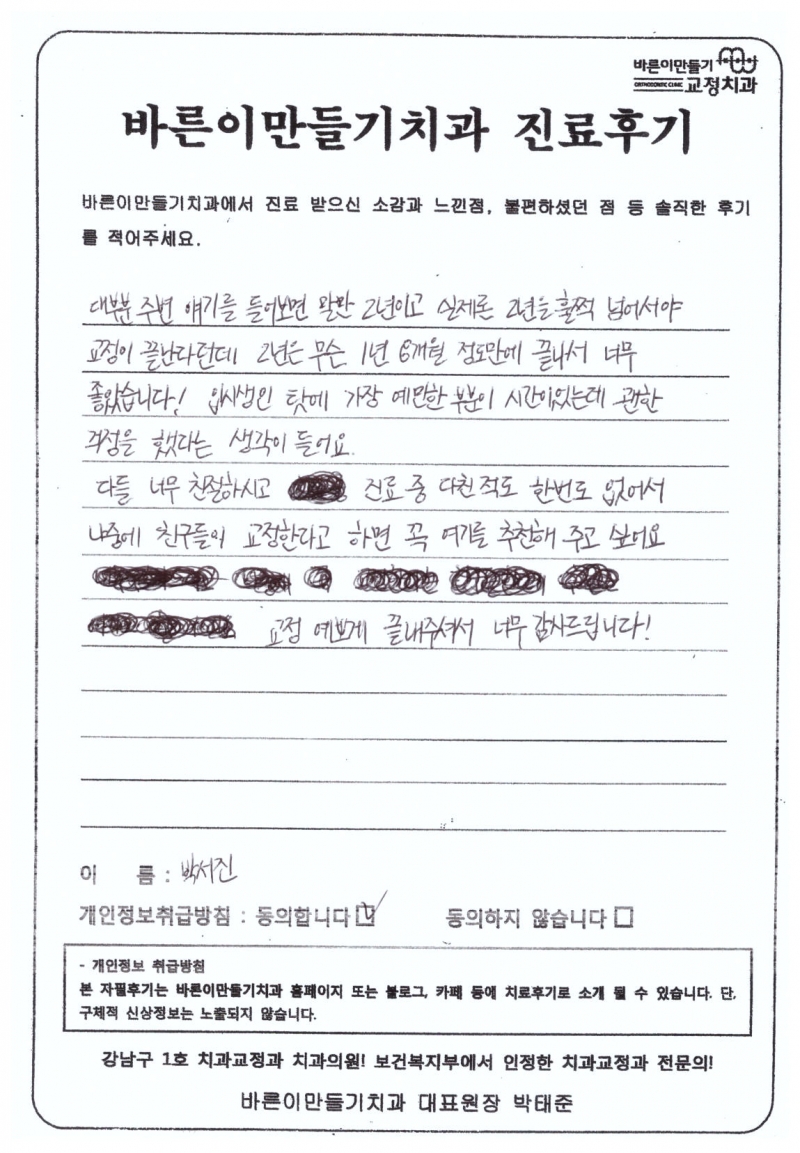 교정치료내용 : 위아래 전체교정 (클리피씨교정)