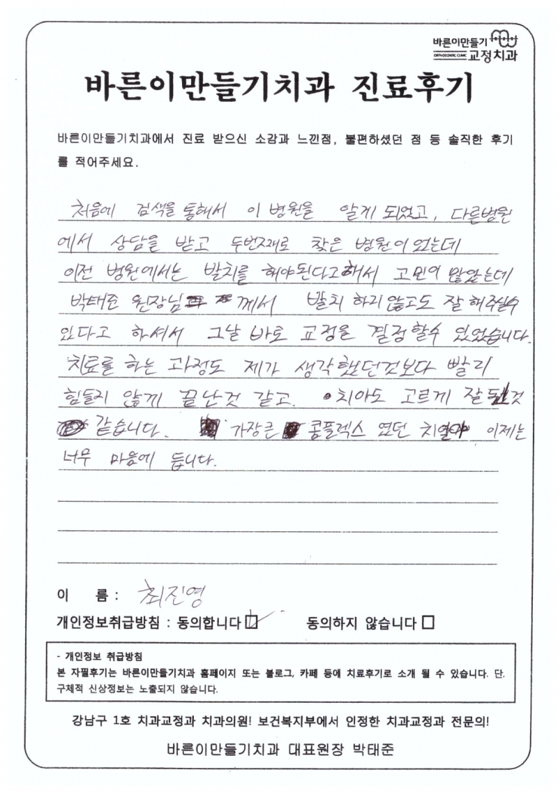 최진영님 치아교정후기