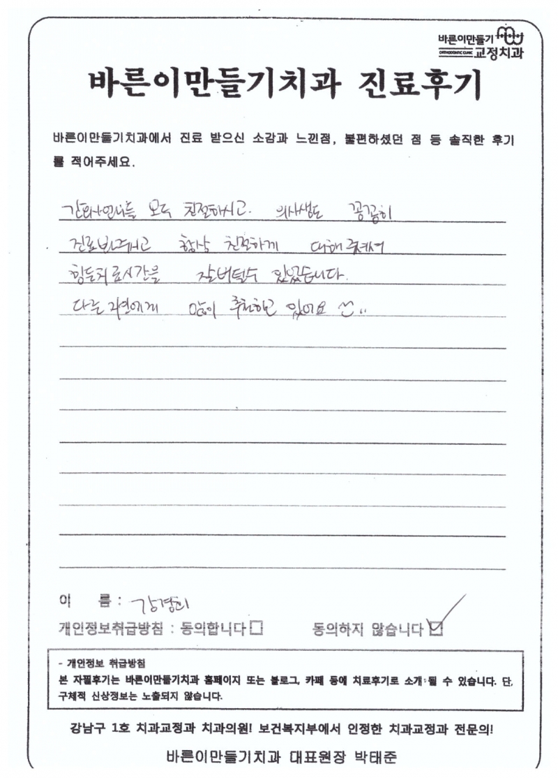 강경희님 치아교정후기