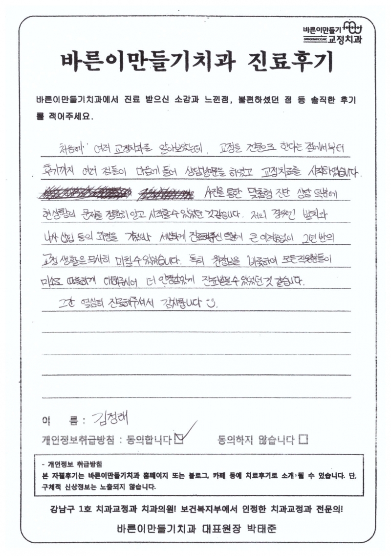 교정치료내용 : 위아래 전체교정 (세라믹 교정)