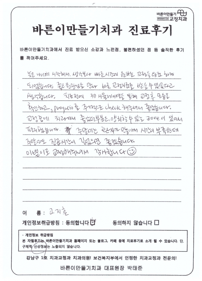 고지흔님 치아교정후기