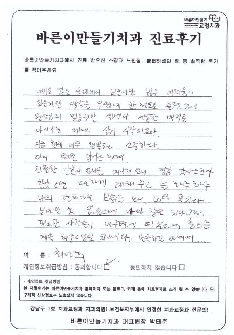 최선희님 치아교정후기