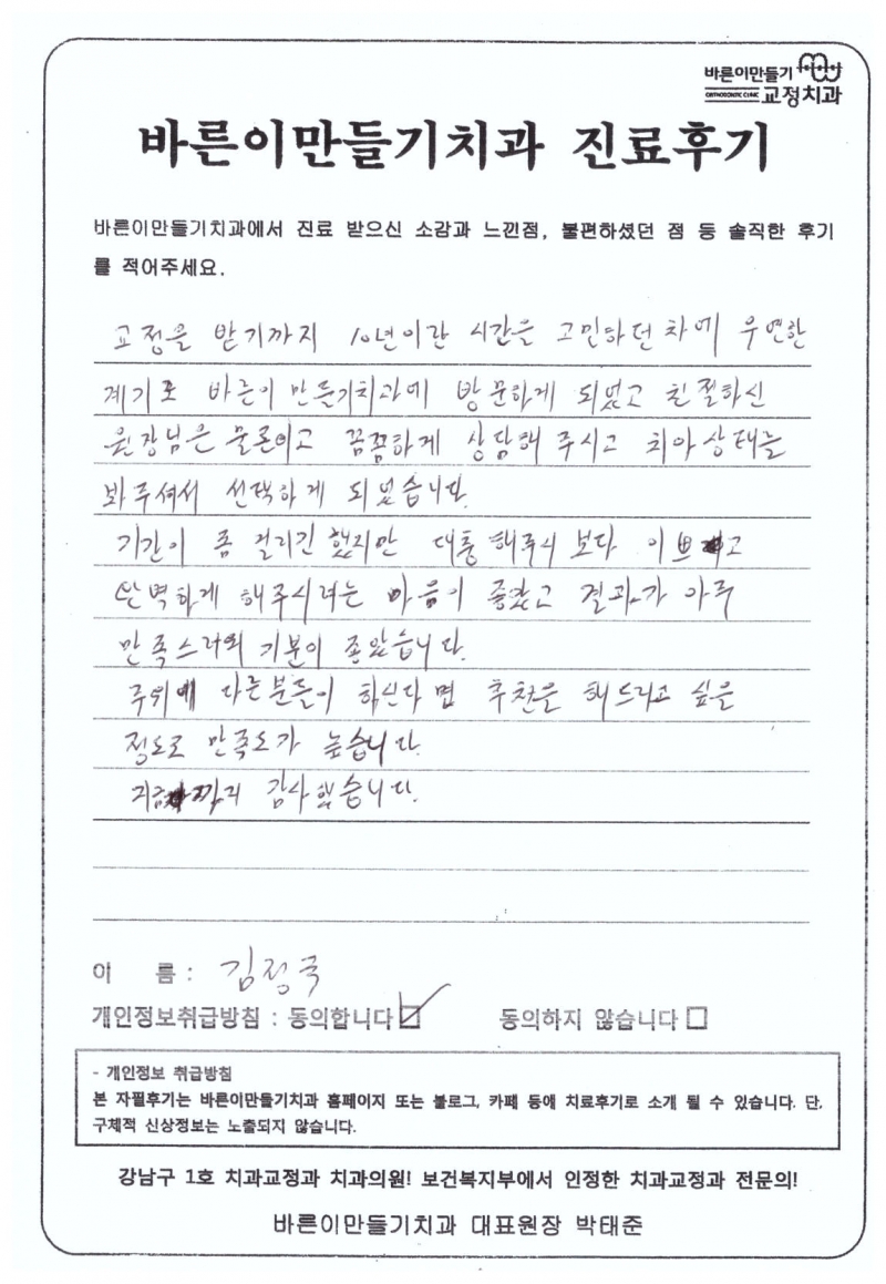 김정국님 치아교정후기