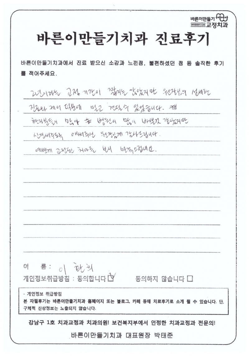 이환희님 치아교정후기