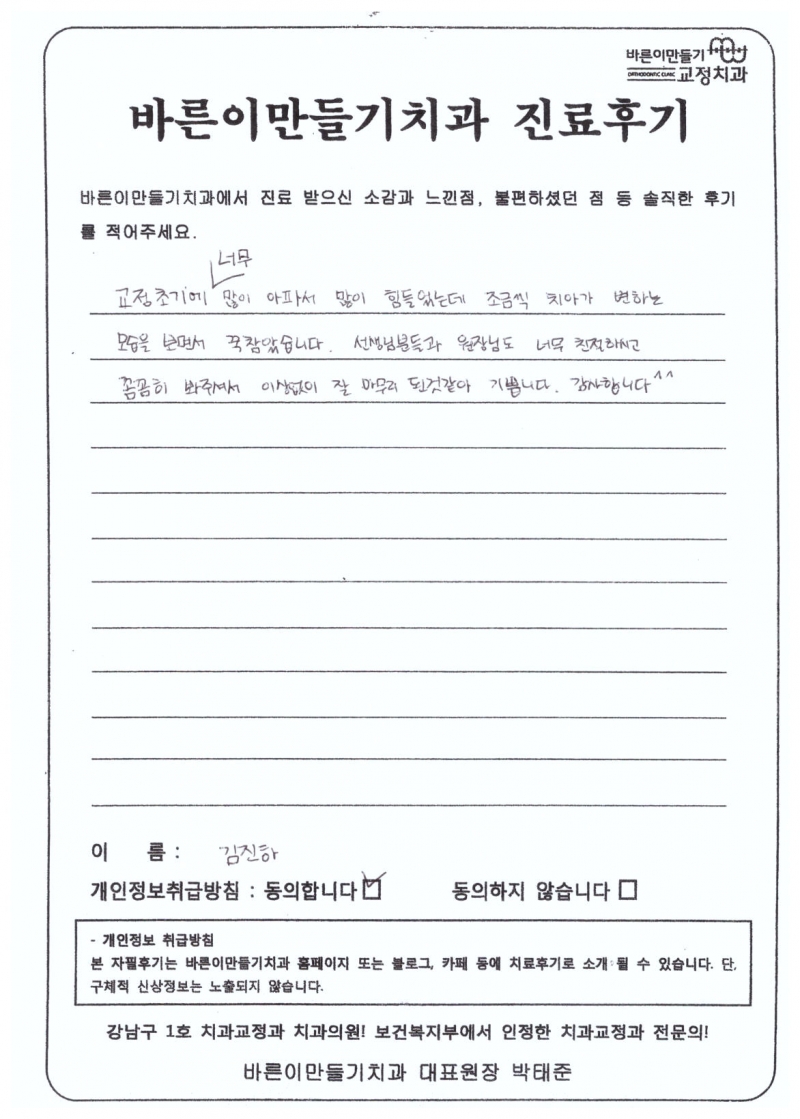 교정치료내용 : 위아래 전체교정 (클리피씨 교정)