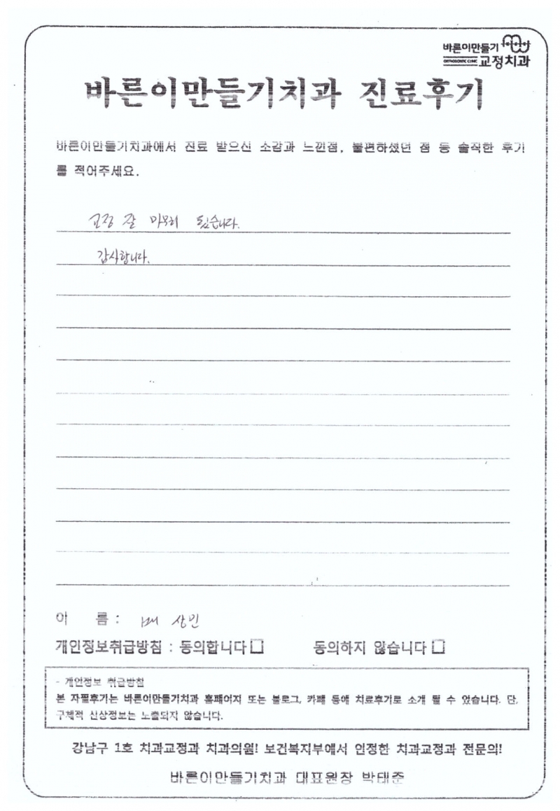 교정치료내용 : 위아래 전체교정 (클리피씨 교정)
