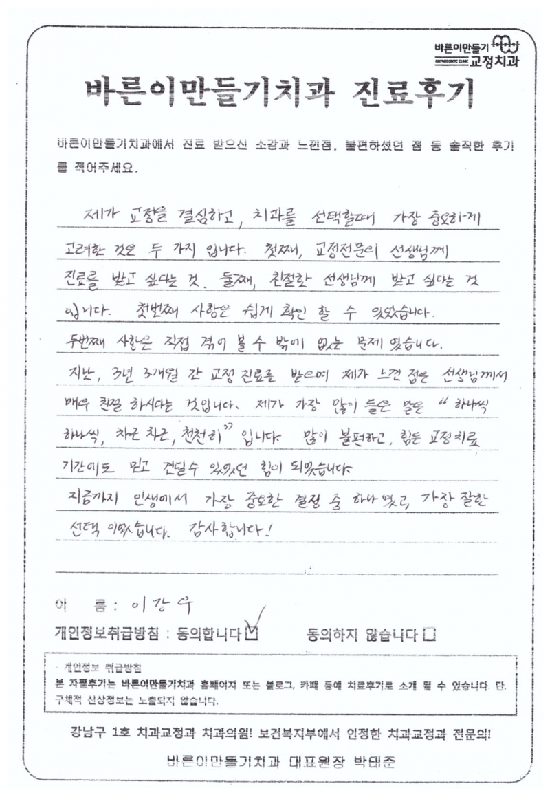 이강우님 치아교정후기