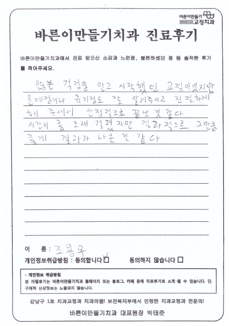 조용무님 치아교정후기