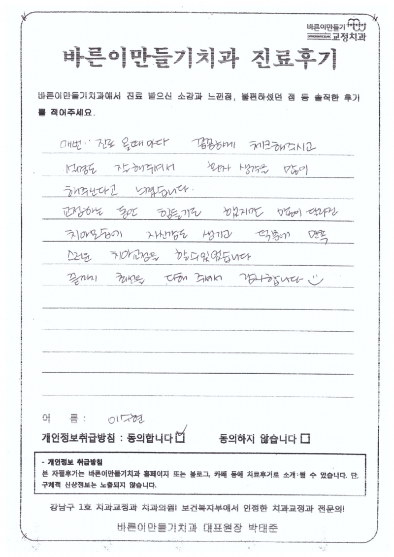 이수현님 치아교정후기