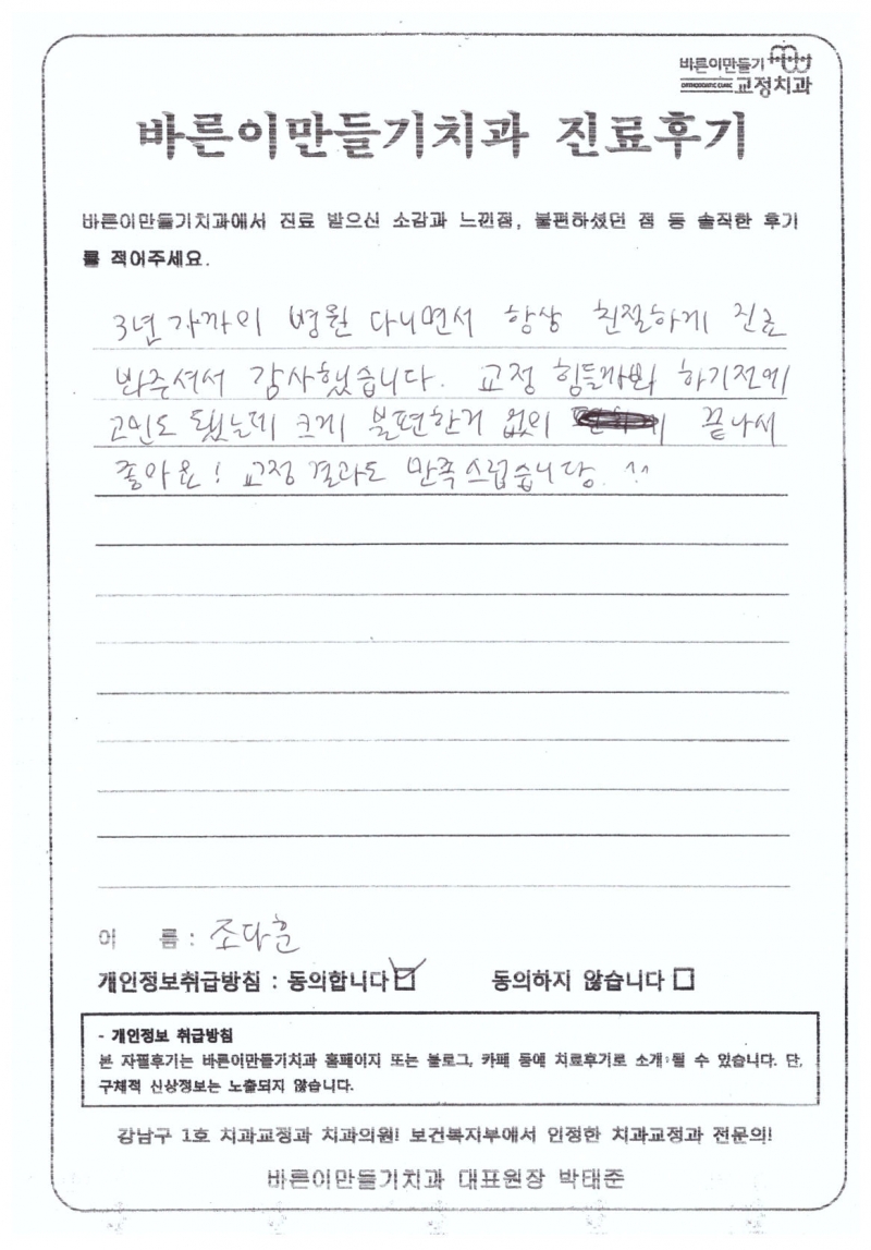 조다훈님 치아교정후기