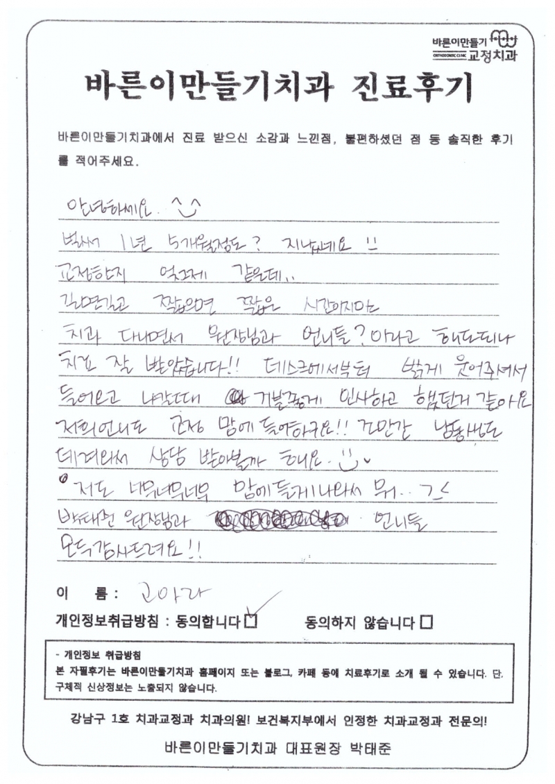 교정치료내용 : 위아래 전체교정 (클리피씨 교정)