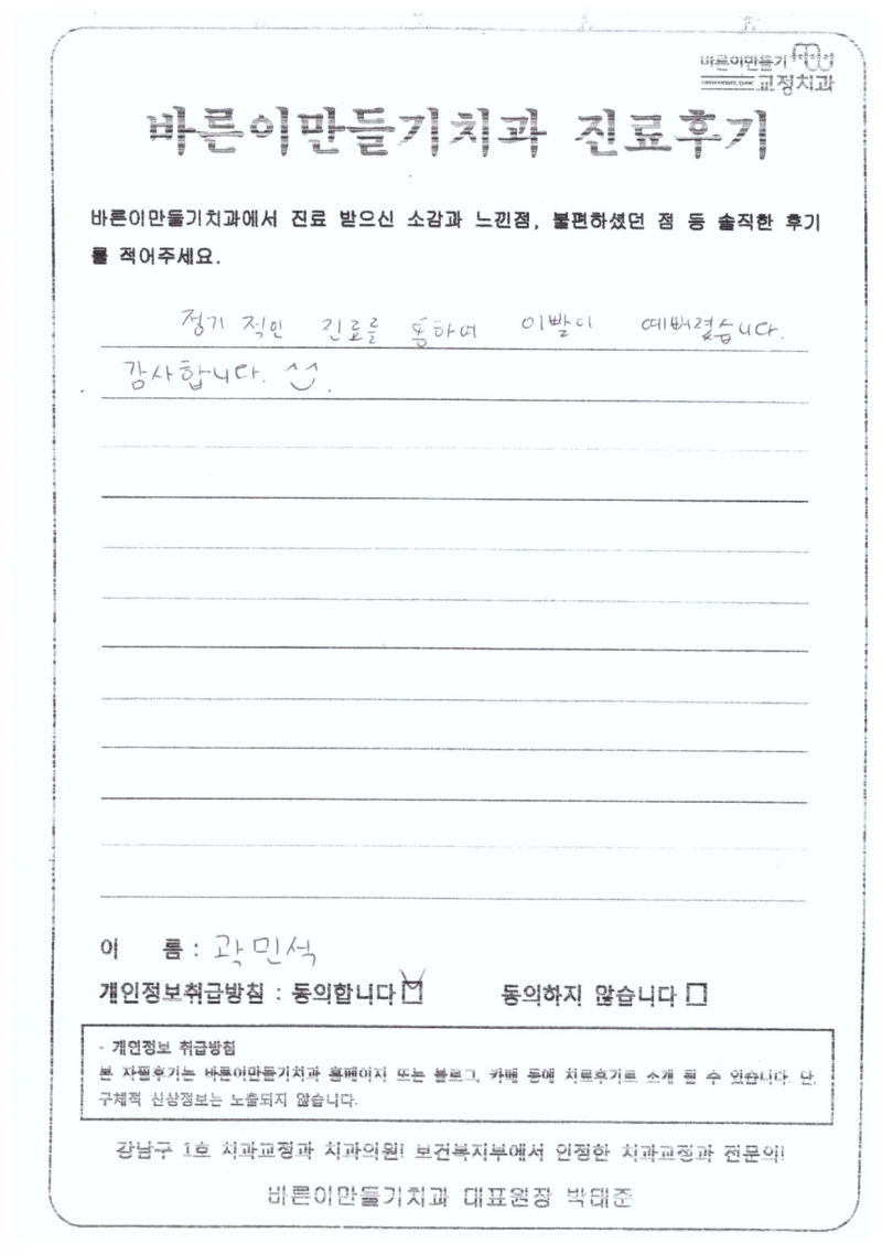 곽민석님 치아교정후기
