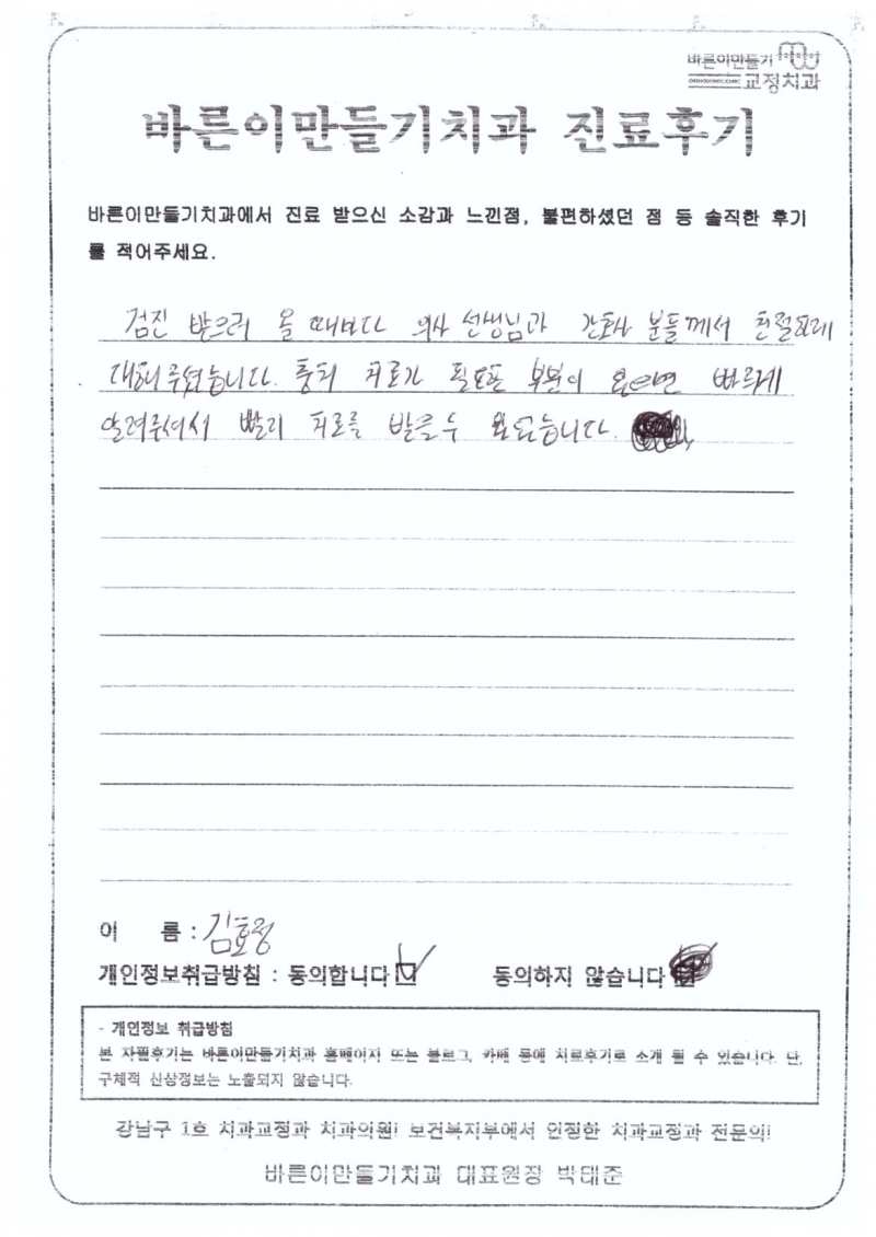 김효정님 치아교정후기