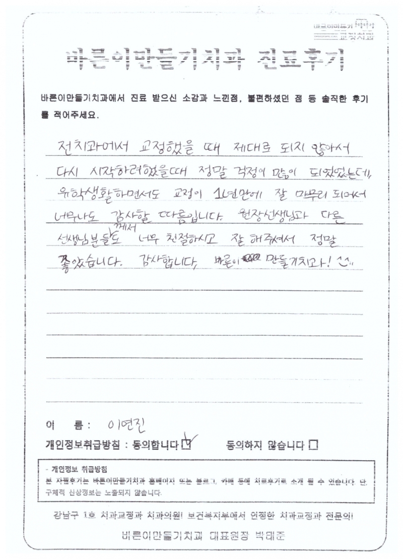 교정치료내용 : 위아래 전체교정 (클리피씨 교정)