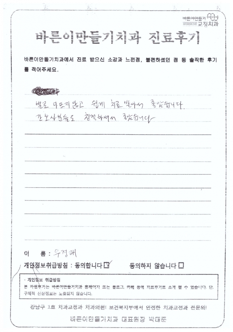 우경래님 치아교정후기