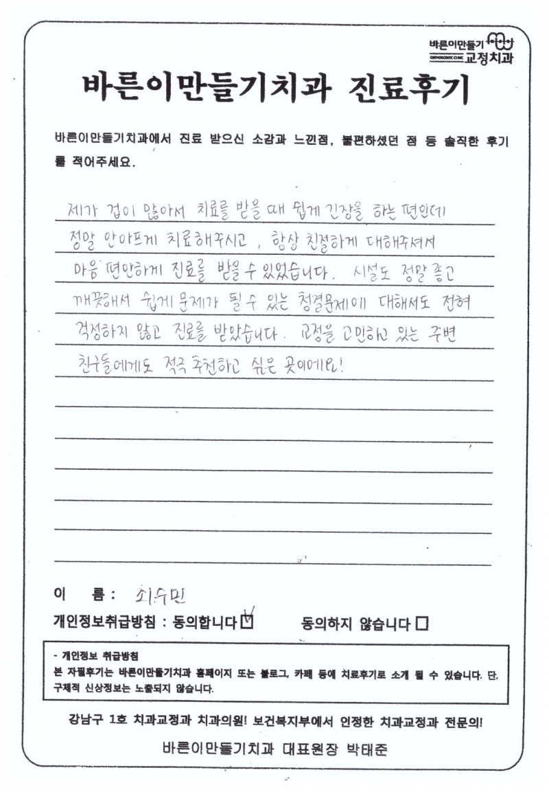 최수민님 치아교정후기