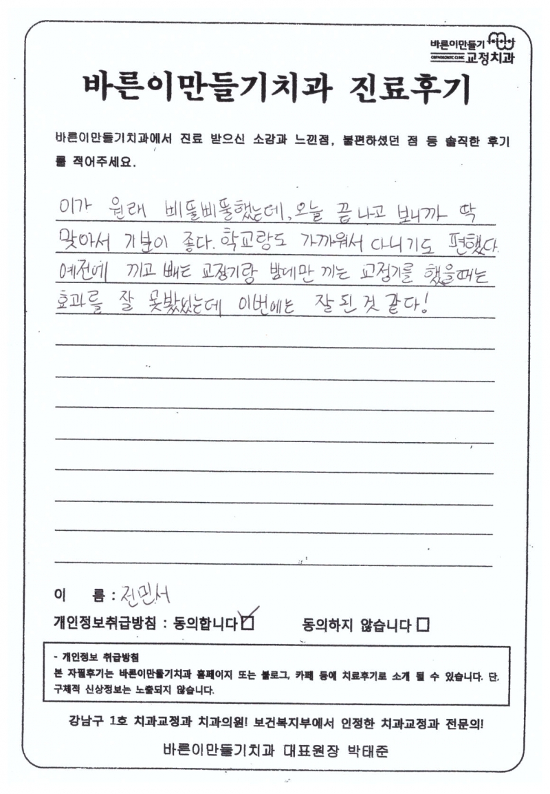 전민서님 치아교정후기