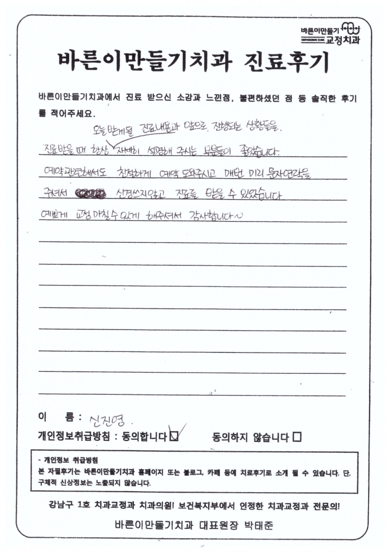 신진영님 치아교정후기