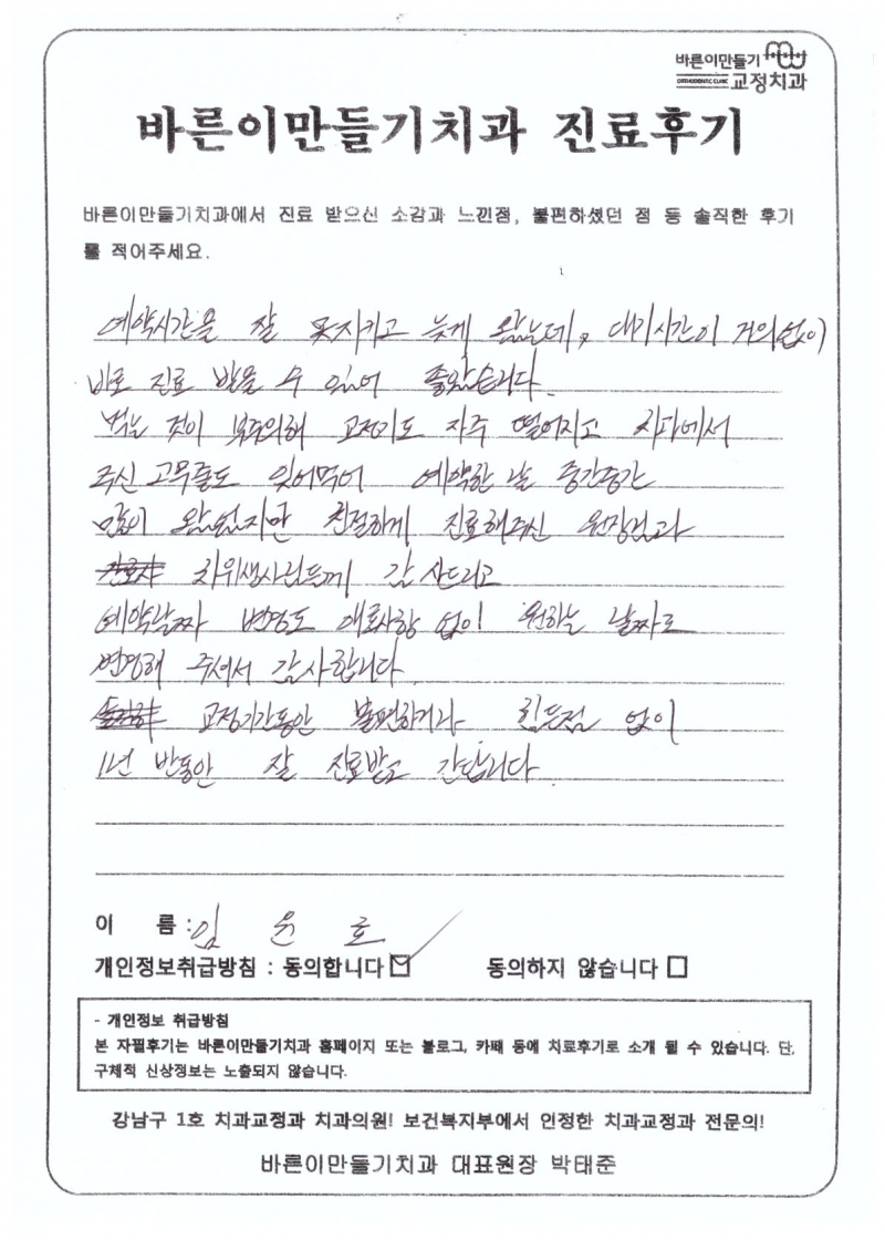 교정치료내용 : 위아래 전체교정 (클리피씨 교정)
