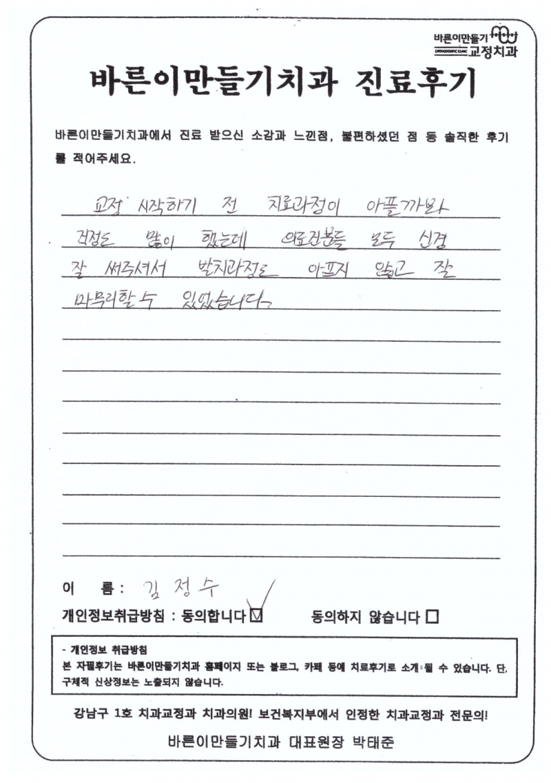 김정수님 치아교정후기