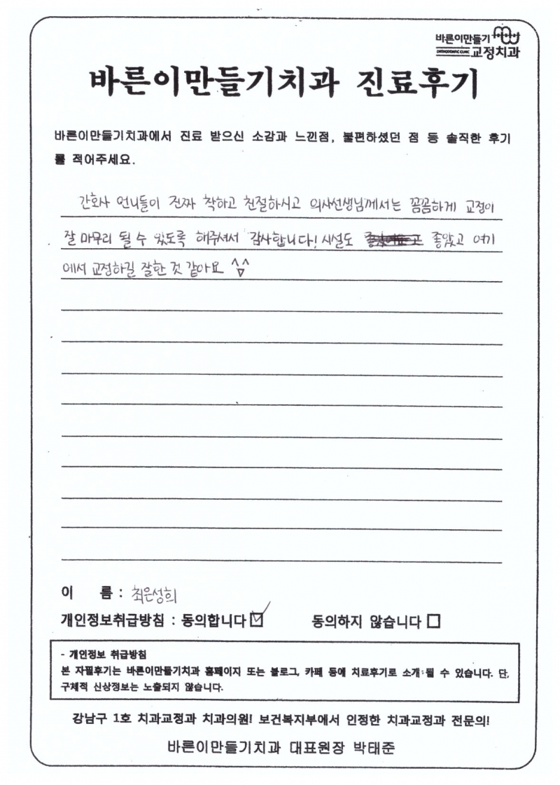 최은성희님 치아교정후기