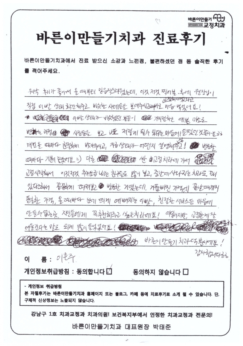 이은주님 치아교정후기