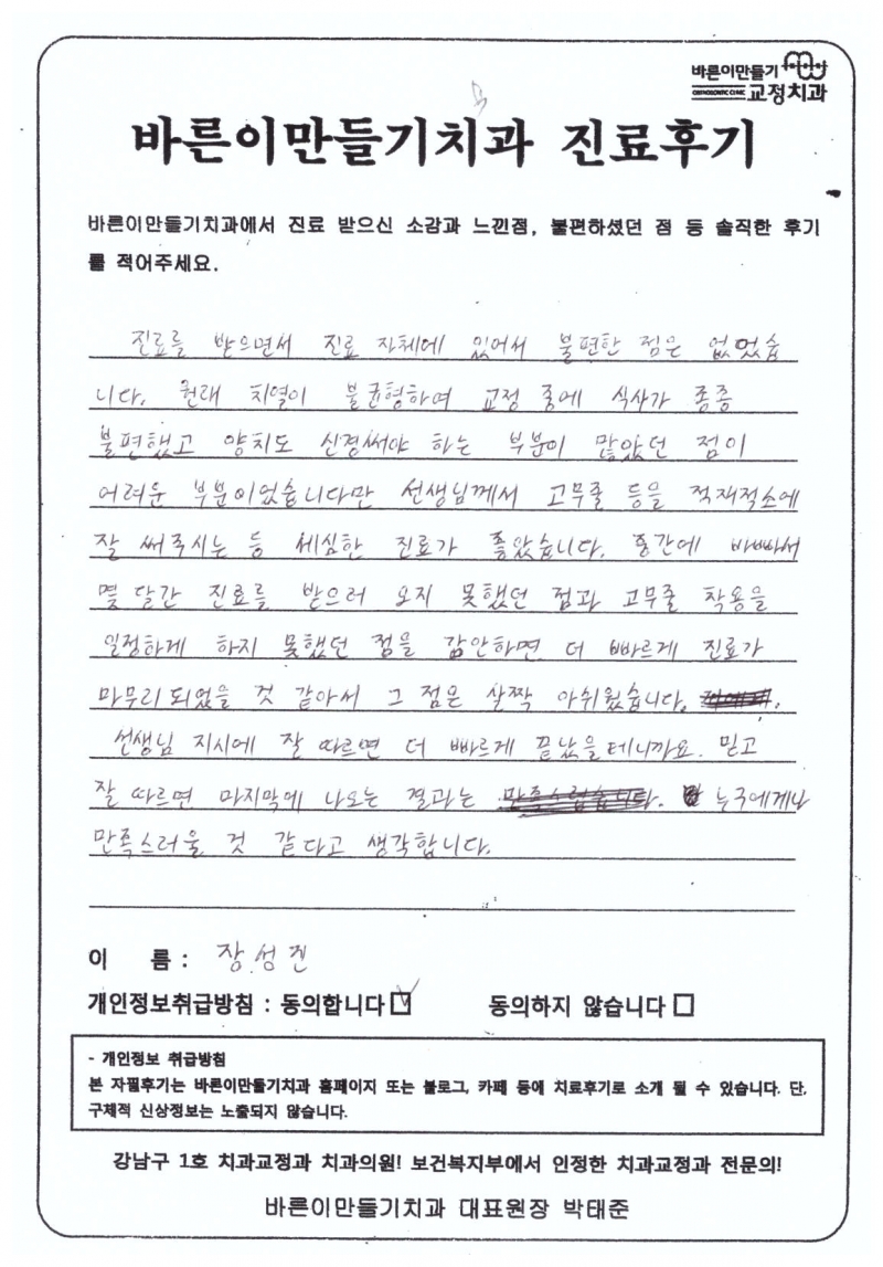 장성진님 치아교정후기