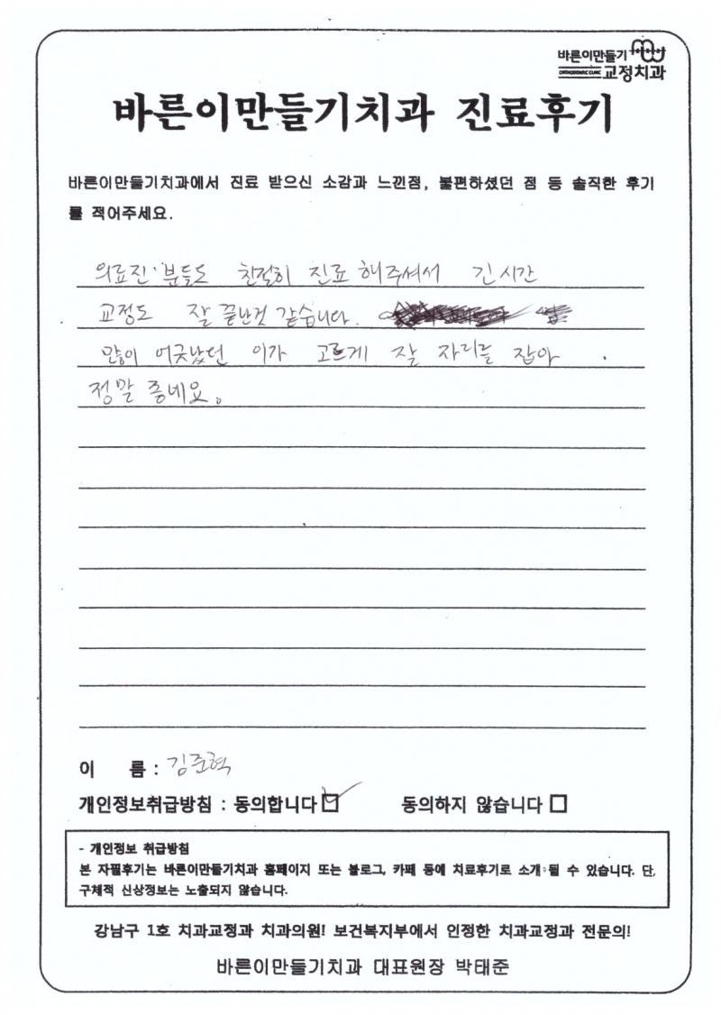 김준혁님 치아교정후기