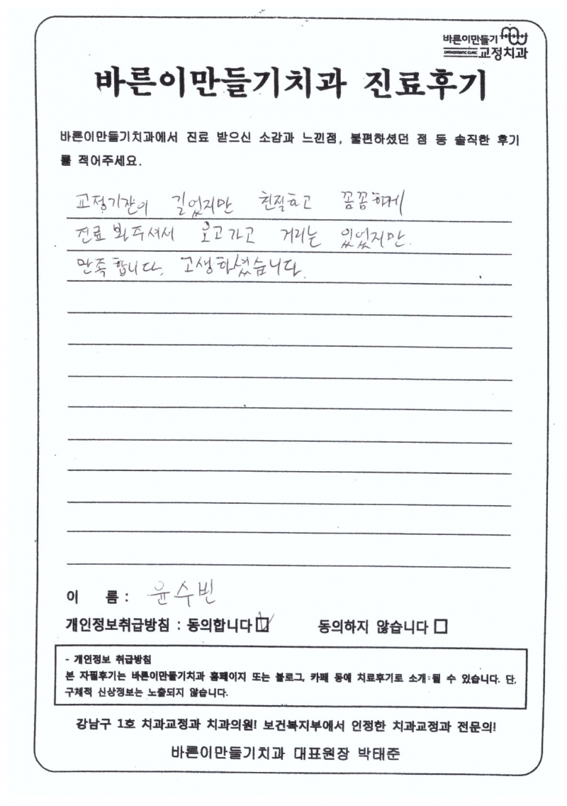 윤수빈님 치아교정후기